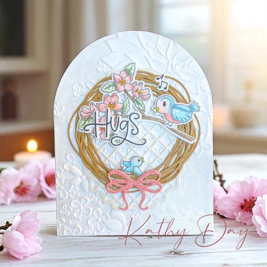 - Create an A2 top folding card base. I used a nesting arched, die set to cut out the shape of the card. Hint: make sure the cutting edge goes just beyond the top fold so you don’t end up with two panels. All my card bases are cut out of 110 pound card stock.