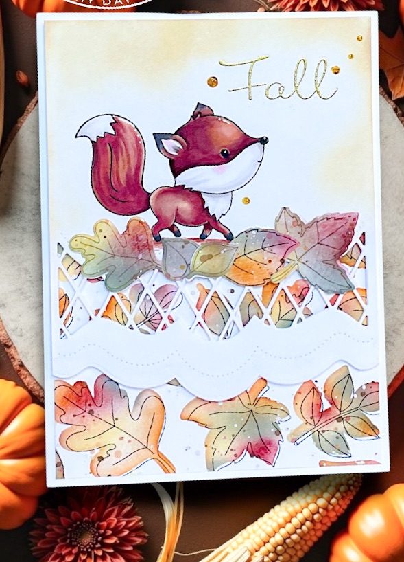 The Rabbit Hole Designs– Fall Foxes and Falling Leaves | Papertrey Ink – Elegant Edges Lace | Scrapbook.com – Pops of Color