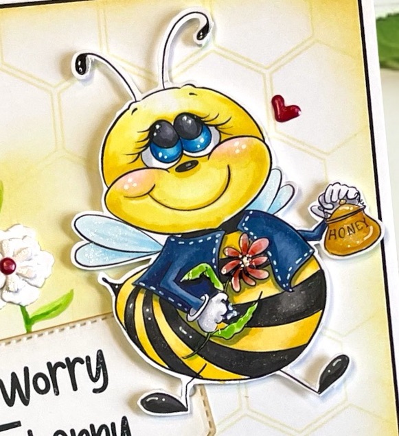 This little bee is hand drawn and colored with Copics. If you believe you can’t draw, just look at the shapes instead of the subject. The bee is literally a circle + oval and ovals for feet and wings. Practice! It’s easier than you may think!
